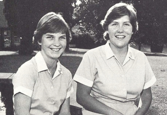 Deputy Head Girl, Debra Martin née Dunton (L) with the Head Girl, Katie Gush (R).